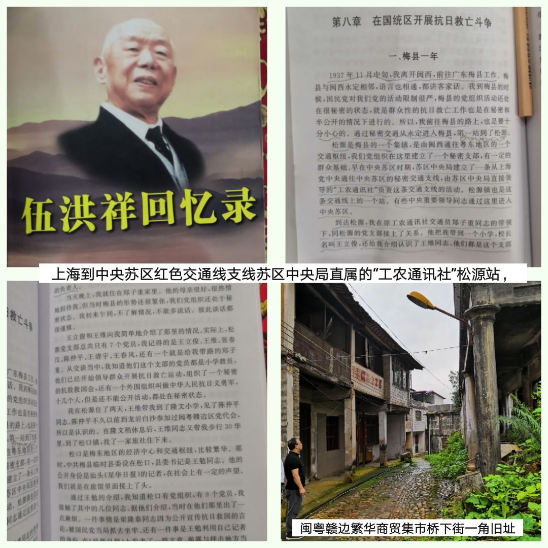 广东松源地下党组织还有永定峰市线;武平岩前将军地、蕉岭县绿禾畲、步上线;大埔虎市、青溪等情报输送传递线。 四、闽粤赣边苏区梅县工农武装粤闽紧密配合历史 1928年4月,中共梅县松江区委成立。6月,苏区松江区委应福建闽西特委调遣,区委书记赖一能率松江区赤卫队100多人农民武装,出征参加福建闽西特委组织领导的千人上杭农民武装暴动(黄联义也在场)——蛟洋暴动(著名的闽西三大暴动之一),25日早到达上杭蛟洋乡口的老塘下圩,胜利攻克敌堡垒,暴动历时3天,走的就是红色交通线:广东梅县松源——澎下尾——石子屶——天落堂——豪猪窝——福建上杭下都砂睦——中都——蛟洋。 五、闽粤赣边苏区梅县红色交通线历史贡献 1927年来,梅县不仅是巩固和保卫中央苏区南部边境安全的重要阵地,而且为中央苏区的后勤物资保障、兵员的补充等提供了有力的支持。中央苏区被国民党严密封锁。由中共闽西地下党领导的广东松源通往中央苏区几条后勤物资保障的秘密交通线,一定程度上打破了国民党军对中央苏区制造封锁。中共梅县党组织、九龙嶂红十团,松江区委、松江区赤卫队等武装四处出击,牵制了广东省大量前往江西参加“围剿”的国民党军队。1929年10月19日,朱德等率6000多红四军出击东江到松源。22日,陈毅从上海带着中央“九月来信”回到松源红四军前委,并在松源同怀别墅首次传达贯彻中央“九月来信”,后陈毅派通讯兵将“九月来信”送往上杭蛟洋苏家坡养病的毛泽东同志,就是走的这其中一条秘密交通线。同月底,朱德等率红四军回师闽西苏区后,至1931年冬,梅县各党组织虽受到国民党重兵打压而瘫痪,但梅县松源苏区的红旗不倒。(注2) 1931年,中共武平县委为了中央苏区后勤物资保障线的畅通,派出干部陈仲平同志到梅县松源六甲中学读书,且继续开展党组织建设和保障交通线的活动。1932年,陈仲平同志发展了松源王建良、王文湘、王宝钦、王春风、王兴书等8位进步老师、学生、青年加入共产党。1933年夏,经武平县委批准重建并成立了松源党支部,陈仲平任书记,这是梅县区域率先恢复的第一个中共党组织。松源党组织的建立,设置寺边敦怡楼等多个松源交通站,保障且激发中央秘密交通线的全面活动。 苏区江西瑞金常派出代表来松源采购物资,武平县委书记陈灿华、武平县委白区工作部长练玉辉、象洞区委组织部长钟细妹、党员张友白、罗荣标及军属、干属等等常到松源党支部巡视指导,以赴松源圩的机会找到松源党支部陈仲平联系,釆买大量中央苏区急需的奇缺物资,后由中共松源党支部书记陈仲平、中共松源区委书记王维等党支部负责组织,通过这多条秘密交通线。向中央苏区输送奇缺的药品、食盐、布疋、蜡纸、电石、电池、电筒、煤油、百货、日用、文化用品等,年送几万吨战略物资。当时,松源及周边的蕉岭南磜、北磜、桃尧、隆文等乡,村村都有来到松源输送物资的民众肩挑大军,用蚂蚁搬家法,三五成群或十人二十人为一队,分散奔走在闽粤赣边蕉岭南磜、北磜,武平县象洞,上杭砂睦、虾公畬、和睦(禾石迳)、中都、城关、丰稔、庐丰,上杭半迳、洪山、峰市、永定城关、广东桃尧、桃源至福建永定高寨背峰市等8条秘密红色交通线。民众肩挑大军穿梭往返在各条重山叠嶂小道秘密的交通线路上,日以继夜,源源不断,星下出门月下归。广东松源挑到上杭砂睦、洪山、峰市、永定城关,武平象洞、岩前、武平城关,当天来回,一般每人挑80--120市斤,到砂睦等地1天来回,才2-3市斤大米的脚钱。松源到武平城关、上杭城关、永定城关需要2天来回,松源到江西瑞金苏区来回一趟需15至20天时间。时江西、闽西苏区的盐价是1:7的猪肉价,有时1:12猪肉价性比。(注3) 闽粤赣边交通线运送大量物资外,还输送了以李碧山、王建良、王文湘、王芰祥等为代表的不少党的梅县苏区优秀青年到红都瑞金参军参战。祖籍广东松源在瑞金落户的人口至今还有近千人,中国各地也少有。松源党支部一直坚持斗争到抗日战争、解放战争的胜利。梅蕉杭武边县委机关设驻闽粤赣边梅县松源,梅县再度成为梅县、蕉岭、上杭、武平等边区党的领导中心。梅县苏区人民为中央苏区经济血昹畅通作出了伟大贡献。 六、闽粤赣边苏区梅县红色交通沿线据点的历史贡献 闽粤赣边中央苏区重要红色交通线沿线据点、梅县松源本地有众多据点外,古商道必经之路,由粤入闽境的第一站上杭县中都砂睦村,从前砂睦村溪旁都是石砌路,沿溪一路有很多店铺、客栈,有驿站等,可以说是沿线据点繁华的一站。其中有位郑裕修,他曾在砂睦和广东松源郑山下(彩山)小学任过教。郑裕修家在砂睦有座房屋叫明德居,他家的房屋就开为歇客店,叫明德客栈(客家人叫歇客店)。明德客栈约1000平方,主店建筑面积约200平方米,2层,4排房子,主店楼上5个床位,楼下是厨房和便利店,主要是顺带卖一点客人需要的生活用品、提供餐宿,便宜经济,只是收一点成本,接待大批南来北往、日以继夜、挑夫过客,大家关系一直非常融洽,像一家人一样,到店客人大都跟店家一起吃饭,客人较多时就安排在旁边楼的房间,有时自己的床也让给客人睡。郑裕修家人如果发现客人很困难的,甚至吃住不收钱,接待过客无数。 笔者釆访老人讲得最多的是广东、江西和福建省武平、上杭、永定境内多地都
