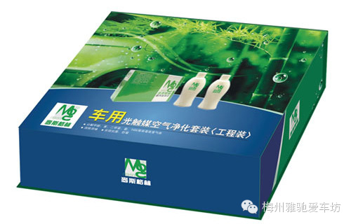 梅州雅驰爱车坊-车用空气净化车用光触媒空气净化产品使用后,可以有效祛除甲醛、苯、二甲苯、氨、TVOC等有机物污染,长效抗菌防霉,消除烟、酒、汗等异味,具有持续、全面、安全、高效的特点,使您处于全方位无菌无毒、天天新车的愉悦环境中。 主要成分:纳米二氧化钛、多种植物提取物、椰壳活性炭